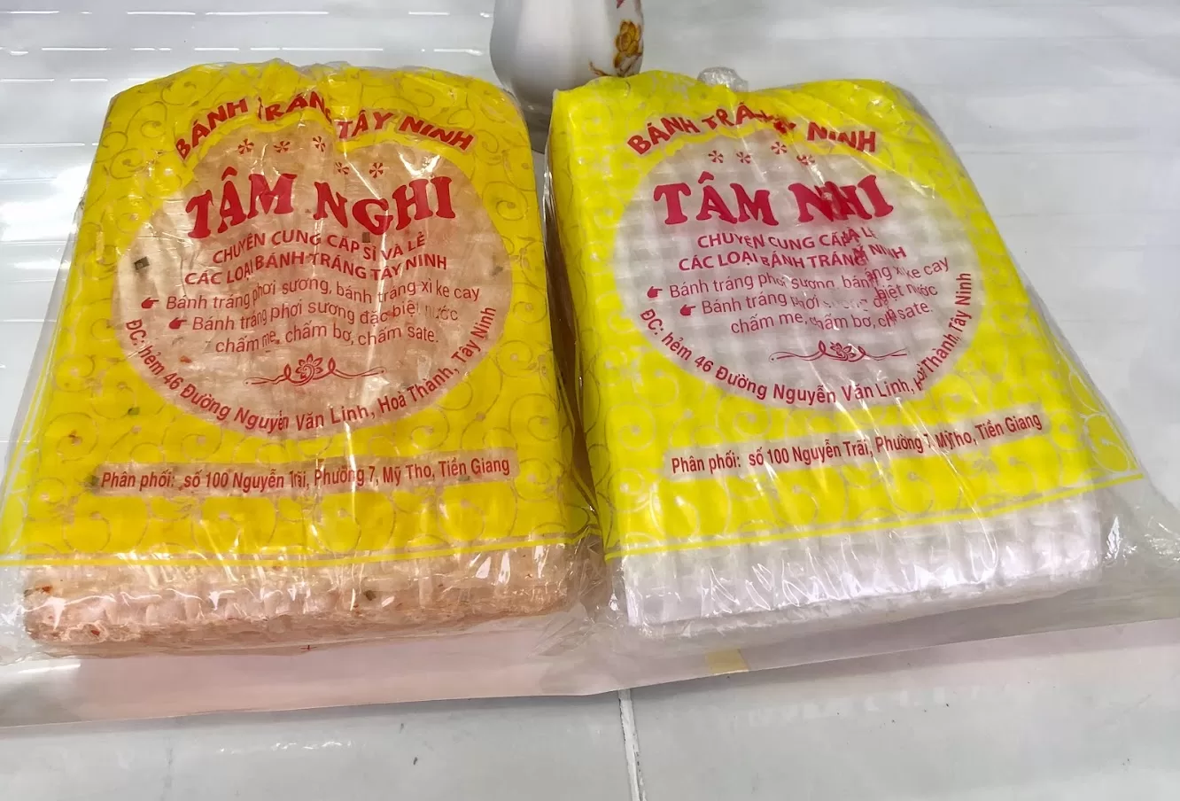 Bánh tráng trắng là loại bánh tráng Tây Ninh quen thuộc của mọi nhà. Và một trong những loại bánh tráng trắng ngon nhất chính là bánh tráng trắng Tây Ninh, vừa thơm vừa dai lại vừa dẻo. Bánh tráng trắng có cả bánh hình vuông lẫn bánh hình tròn nhé.