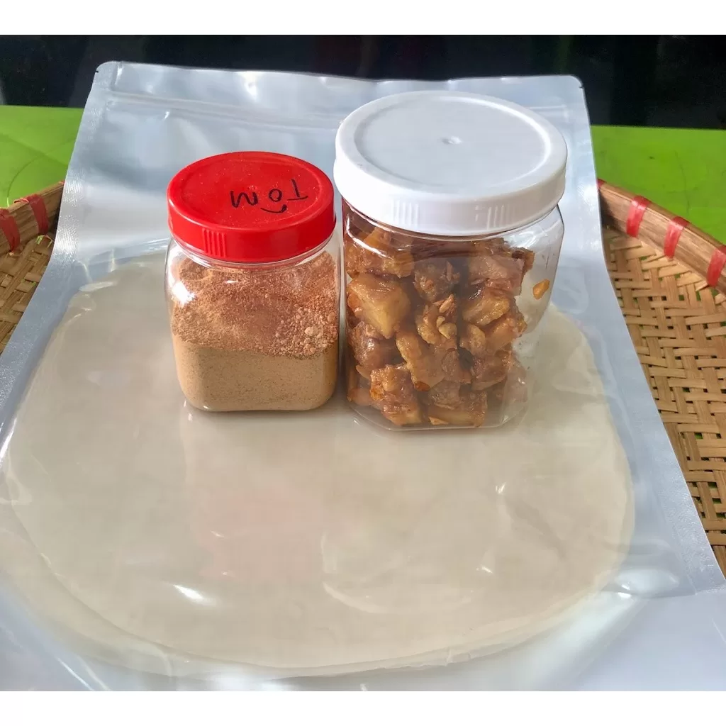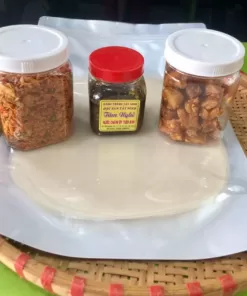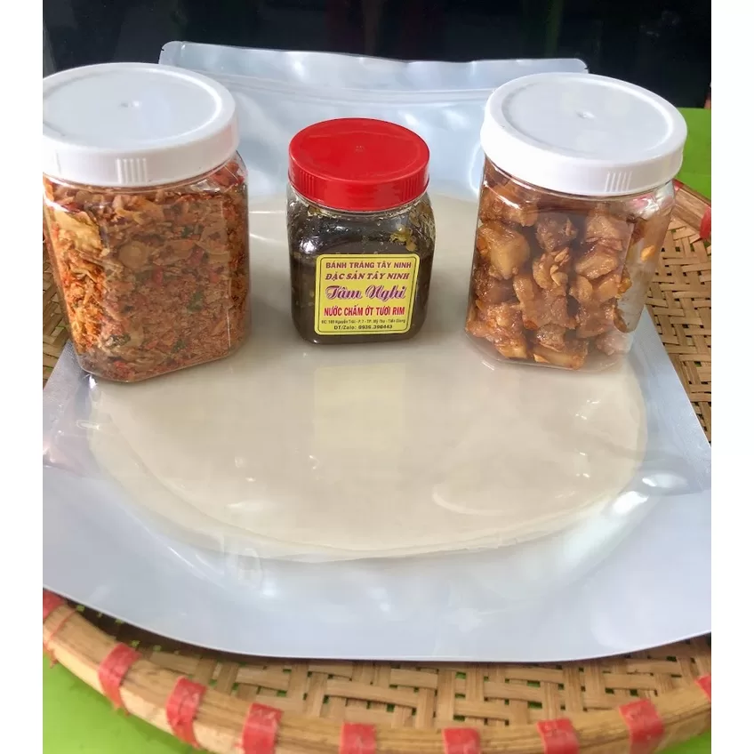 - combo4 :bao gồm 250g bánh tráng phơi sương tây ninh chính gốc, hủ muối tôm nhuyễn 100g, hủ tép mỡ da giòn 100g