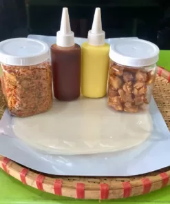 - combo2 :bao gồm 250g bánh tráng phơi sương tây ninh chính gốc, hủ topping muối ruốc hành phi 140g, chai sốt tắc ăn kèm 100ml