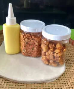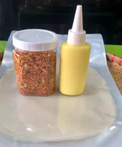 - combo1 :bao gồm 250g bánh tráng phơi sương tây ninh chính gốc, hủ topping muối ruốc hành phi 140g, chai bơ ăn kèm 100ml