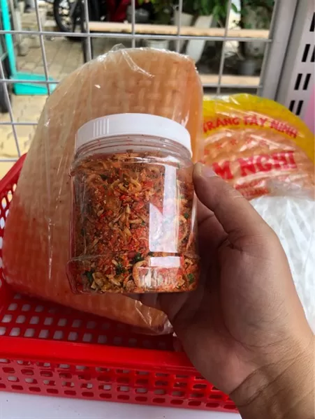 Thành phần: muối tôm hạt loại 1, muối tôm nhuyễn loại 1, hành phi nhà làm giòn béo, ruốc sấy ngọt thanh, không cay